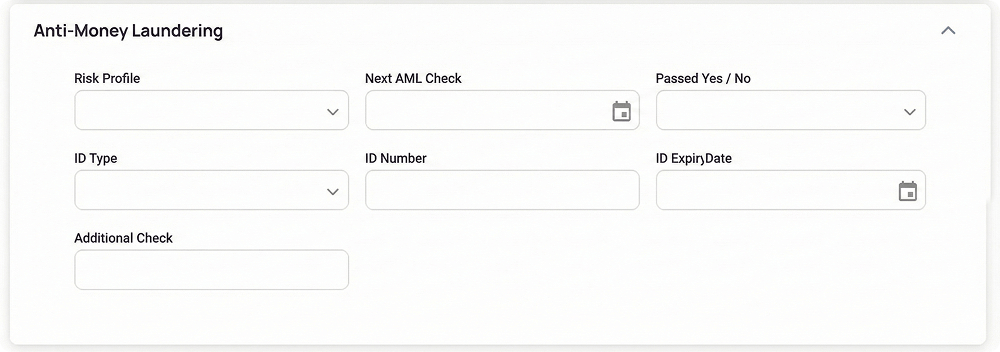 AML app logic now extends to contacts, not just clients. The same fields that were previously created only at the client level are now also available for contacts.